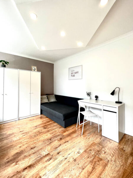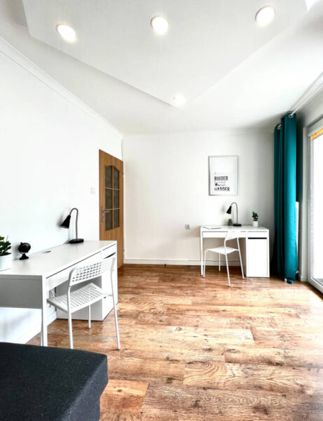 Całkowity koszt najmu za pokój dwuosobowy dla jednej osoby: 1500 zł czynsz + 450 zł opłaty eksploatacyjne (gaz, prąd, woda, ścieki, śmieci, administracja, internet ) co oznacza łączny koszt na osobę tylko 1950 zł / miesięcznie!